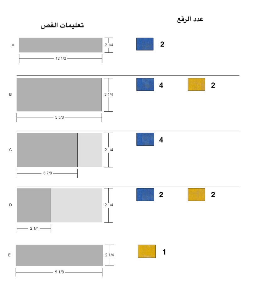 | من القماش الأصفر | 9 1/8 * 1/4 2 1/4 2 * 1/4 2 5 5/8 * 1/4 2 | 1 2 2 |